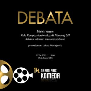 DEBATA SILNIEJSI RAZEM. Koło Kompozytorów Muzyki Filmowej SFP Coroczna debata z udziałem festiwalowych gości - twórców ze świata kina: kompozytorów muzyki filmowej, reżyserów, aktorów, dziennikarzy muzycznych, krytyków filmowych. Prowadzenie: Łukasz Maciejewski ...